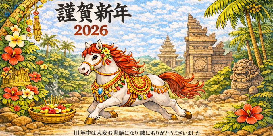 2026.01.05 新年のご挨拶 Post Share Hatena Line RSS feedly Pin it note 記事のタイトルとURLをコピーする New Year Greeting 新年のご挨拶 謹んで新年のご挨拶を申し上げます。 旧年中は格別のご愛顧を賜り、誠にありがとうございました。 本年も、バリ島への学びと癒しの場をより一層充実させ、皆さまにお届けしてまいります。 年始営業開始 2026年1月5日(月)より通常営業 お問い合わせ 専用フォーム / 公式LINE よりお気軽にご連絡ください 年末年始休業のお知らせ 前の記事